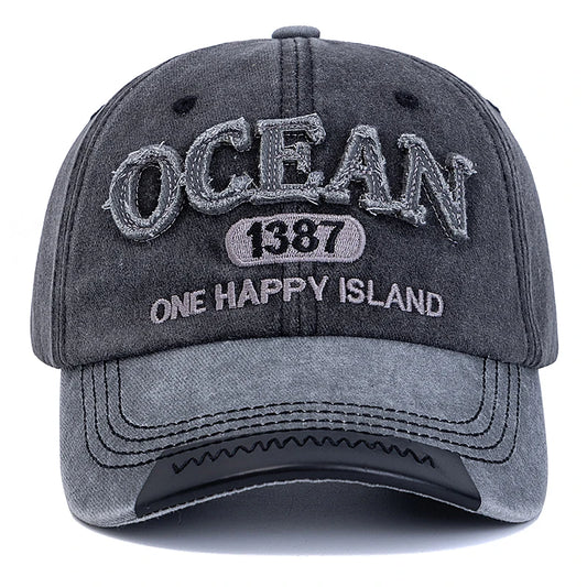 New Style Unisex Baseball Cap OCEAN 1387 Letter Embroidery Dad Hat Women Men Outdoor Washed Cotton Cap