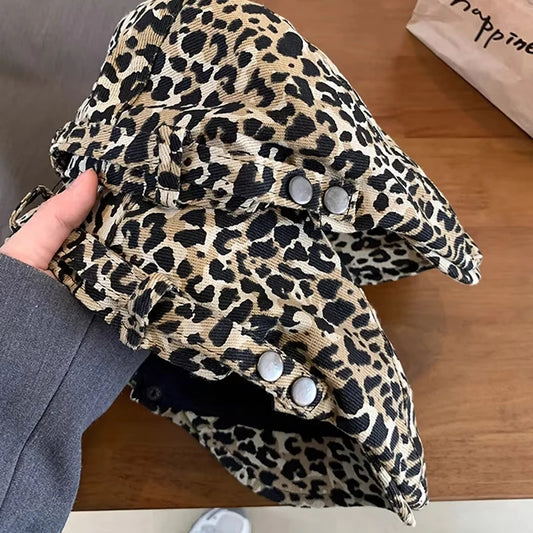 Retro leopard print beret, denim print, male and female artist's hat, artistic and casual forward hat, suitable for all seasons