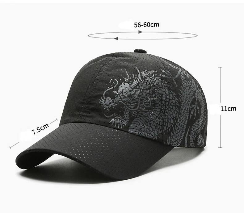 Hat, Chinese Style Printing Dragon Baseball Cap, Polyester Outdoor Quick Drying Hat, Sun Protection Hat, Cap, Cap, Both Men And